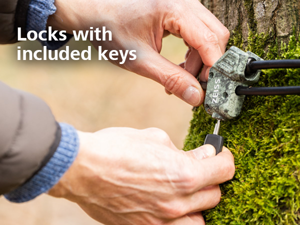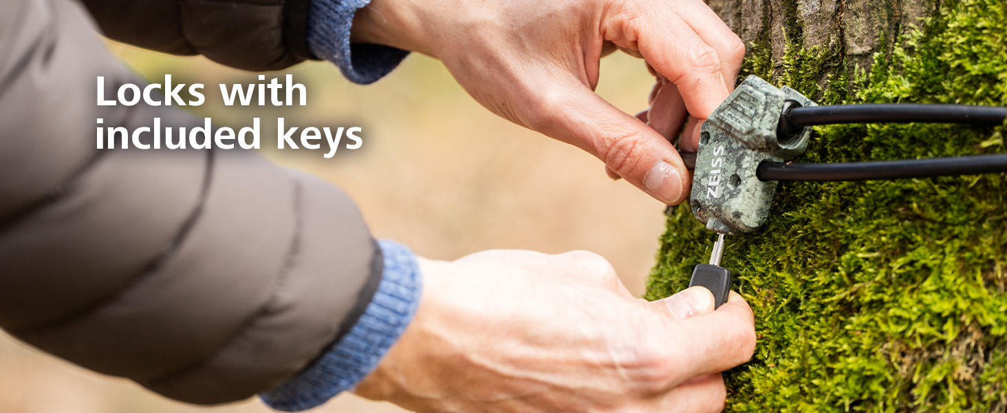 With the ZEISS cable lock, you can reliably protect your ZEISS Secacam against theft and unauthorized access. The lock is ideal for use in the field, garden, or anywhere your camera is left unattended.