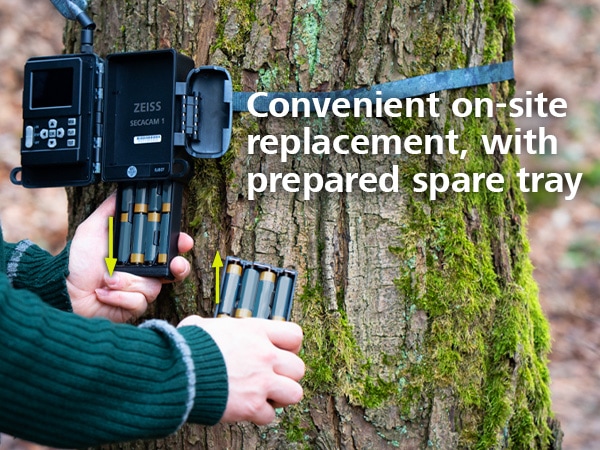 This battery magazine is identical to the compartment included with your ZEISS Secacam 1 and ZEISS Secacam 3. It is specifically designed for this model and provides the perfect solution for quick and easy battery replacement in the field. The replacement battery magazine is not just a practical spare part but also a valuable accessory to maximize the operating time of your trail camera.